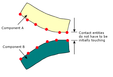 • Esta fórmula de contato está disponível com o tipo de contato Sem penetração para estudos estáticos, não lineares e térmicos. Para estudos estáticos e não lineares, este tipo de contato impede a interferência entre as faces de origem e de alvo, mas também permite que elas se distanciem entre si, formando espaçamentos. Para problemas térmicos, você pode usar a opção Resistência térmica.