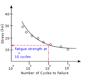 A resistência à fadiga é determinada pela aplicação de diferentes níveis de tensão cíclica para espécimes de teste individuais e pela medição do número de ciclos até a falha. A representação gráfica do pontos de dados de fadiga é a amplitude da tensão cíclica ou a tensão alternada (S - eixo vertical) em relação ao número de ciclos até a falha (N - eixo horizontal). A resistência à fadiga é definida como a tensão na qual a falha por fadiga ocorre em um determinado número de ciclos. Uma curva S-N típica é mostrada abaixo.
