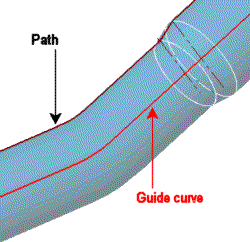 Define o caminho ao longo do qual o perfil é varrido. Selecione um esboço de caminho na árvore de projetos do FeatureManager ou na área de gráficos. O caminho pode ser aberto ou fechado e pode ser um conjunto de curvas esboçadas contidas em um esboço, curva ou conjunto de arestas de modelo. O ponto inicial do caminho deve residir no plano do perfil.