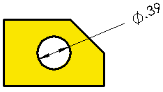 Quando uma dimensão de diâmetro é grande demais para uma vista de desenho, a dimensão é automaticamente escorçada.