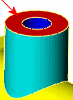 2. Seleccione un Plano neutro en la zona de gráficos. En este ejemplo, seleccione la cara plana de color rojo situada en la parte superior del cilindro. La flecha de Dirección de desmoldeo señala hacia arriba.