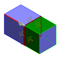 Para aplicar un ángulo de salida a una línea de separación, puede dividir primero las caras a las que se aplicarán los ángulos de salida insertando una línea de partición, o puede utilizar una arista del modelo existente. A continuación, especifique la Dirección de desmoldeo, es decir, de qué lado se elimina material de la línea de partición.