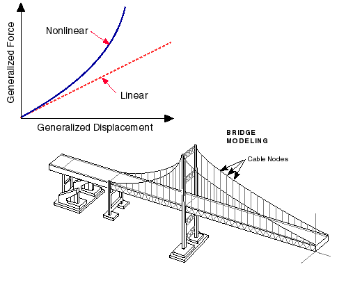 Doğrusal olmayan sonlu eleman analizinde, büyük yer değiştirmelerin yapıların genel geometrik konfigürasyonu üzerindeki etkisi doğrusal olmamaya neden olan başlıca kaynaklardan biridir. Büyük yer değiştirmeleri geçiren yapıların geometrisinde, yapının sertleşerek ve/veya yumuşayarak doğrusal olmayan bir tepki vermesine yol açan yük kaynaklı deformasyonlar nedeniyle önemli değişiklikler meydana gelebilir.