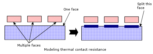 Bir büyük yüz ve birçok küçük yüz arasındaki farklı termal dirençleri belirtmek amacıyla farklı çiftler için termal temas direncini atamadan önce büyük yüzü birçok küçük yüze ayırmanız gerekir.