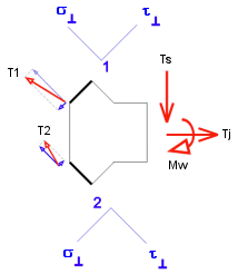 被熔接單位長度所傳達的力變成與熔接縱軸平行及橫向的分量,及與熔接喉部平面垂直與橫向的分量。