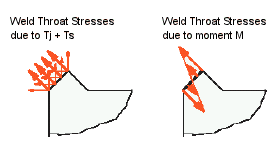 對於單邊的熔接,如果拉伸力被垂直轉移至熔接的縱軸上,則會考慮局部的離心力。在此狀況中,拉伸力會在熔接喉部產生一個彎曲力矩。