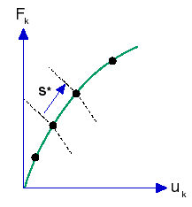 In this strategy, the loads applied to the system are used as the prescribed variables. Each state (point) on the equilibrium path is determined by the intersection of a surface (F = constant) with the path to determine the deformation parameters.