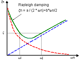 If the damping ratios for the ith and jth modes are ζi and ζj, then the Rayleigh coefficients α and β are calculated from the solution of the two algebraic equations:
