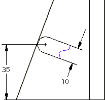 In this example, the intent is to show a partial section view of the rib. To illustrate what the cross section of the rib looks like, you manually create a sketch and apply area hatching.