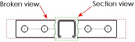 You can combine a broken view with one or more section views to create a rotated (revolved) section view.