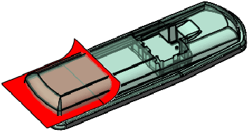 The solid Target Body (remote control) indented by the Tool Body Region (red extruded surface)