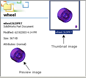 Use Windows Explorer to see thumbnail images and to access custom property information for SolidWorks documents.