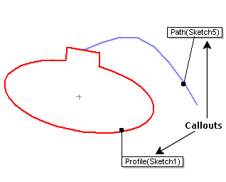Ils vous aident à distinguer les différentes entités. Par exemple, ces textes associés montrent le profil de balayage et la trajectoire de balayage. Vous pouvez les faire glisser pour les repositionner, mais vous ne pouvez pas les utiliser pour changer les propriétés de l'entité à laquelle ils font référence.