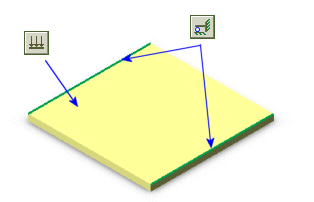 L'exemple suivant illustre les différences entre les déplacements imposés de type Immobile et Fixe pour des coques. Considérez une plaque mince qui n'est supportée qu'à deux extrémités opposées. Une pression normale uniforme est exercée sur la coque.