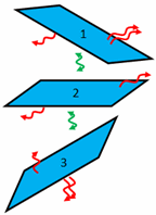 Lorsque vous définissez la radiation de coques, les cas suivants peuvent se produire: (Pour des raisons de simplicité, seules les surfaces planes sont illustrées)