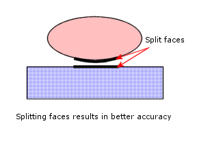 - Les résultats sont le plus précis quand la distance entre les deux faces en contact est inferieure ou égale à la taille des éléments à proximité. L'exemple ci-dessous peut aboutir à des résultats incorrects.