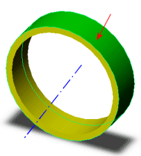 La face sélectionnée du perçage cylindrique peut pivoter autour ou se déplacer le long de l'axe de référence illustré dans la figure. Les flèches rouges épaisses représentent les mouvements autorisés.