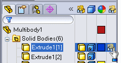 - Dans une pièce à corps multiples, pour changer les paramètres d'affichage d'un corps spécifique, développez le dossier Corps volumiques.