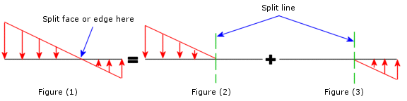 Pour appliquer une force non uniforme dont la direction est variable [Figure(1)], il faut diviser l'entité de chargement à l'endroit où la force change de direction et appliquer la force en deux étapes [Figure (2) & Figure (3)].
