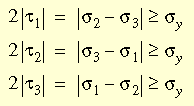 En d'autres termes, l'élasticité repose sur la contrainte de cisaillement maximal qui est égale à la moitié de la différence entre les contraintes principales maximale et minimale. Conformément à ce critère, la contrainte principale intermédiaire n'influence pas l'état d'élasticité.