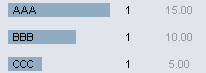 Wertleisten sind nur für numerische Eigenschaften verfügbar. Wenn die Wertleisten aktiviert sind, wird die Komponente mit dem höchsten Wert als längster Balken angezeigt. Sie können die Länge der Leisten so festlegen, dass sie relativ zur Komponente mit dem höchsten Wert oder relativ zur ganzen Baugruppe berechnet wird.