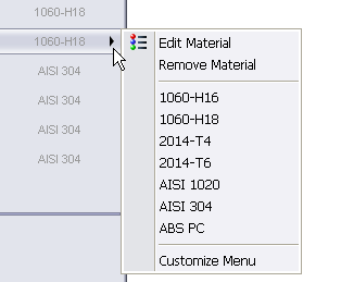 Sie können Komponentenmaterialien direkt in der Liste der Baugruppenvisualisierung hinzufügen, bearbeiten oder entfernen.