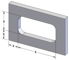 ブロック (Block) または、普通 (General)は、DimXpert の方式で、ブロック公差 (Block Tolerance)、あるいは普通公差 (General Tolerance) を選択するかどうかに基づいて現れます。 を参照してください。