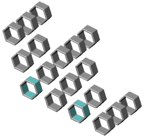 マルチボディ部品では、元のマルチボディ部品パターンを作成するのに使用したマルチボディ部品をすべて、またはいくつかを含むパターンを作成できます。直線、円形、スケッチ駆動などのパターンを使用できます。