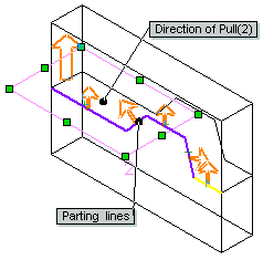 • 他のすべてのパーティング ライン セグメントは平面の開く方向になければなりません。