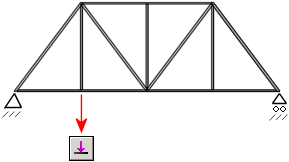 ジョイントと参照点に集中荷重を設定できます。また、重力を設定することも可能です。プログラムは、指定された加速度および密度に基づいて重力荷重を計算します。各要素で生成される軸荷重のみが考慮される点に注意してください。トラスでは垂直に適用された荷重は無視されます。