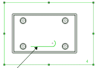 スケッチの輪郭を延長し、リブが境界に達するまで同じ輪郭の関係式によってつなげるようなリブを作成します。 たとえば、スケッチが円の円弧である場合、自然 は円の関係式を使用してリブを境界に達するまで延長します。