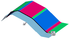 Para arestas, a superfície é estendida ao longo do plano da aresta. Para faces, a superfície é estendida ao longo de todas as arestas da face, exceto as conectadas a uma outra face.