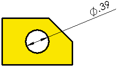 Para padrões diferentes de ANSII, exibe uma linha de chamada através do centro em vez de na circunferência.