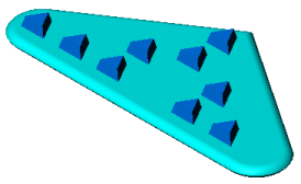 Cria o padrão somente com o uso da geometria (faces e arestas) dos recursos, em vez de aplicar padrão a cada instância dos recursos e resolver essa instância. A opção Padrão de geometria aumenta a velocidade de criação e de reconstrução do padrão. Não é possível criar padrões de geometria dos recursos que têm faces mescladas com o restante da peça.