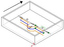 Um único esboço aberto na face. A seta indica a direção do recurso de nervura. |