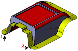 Quando as superfícies ou sólidos possuírem arestas pequenas, use Selecionar loop parcial para escolher uma cadeia de arestas de conexão. A direção da cadeia se baseia na posição relativa da segunda aresta aberta selecionada: