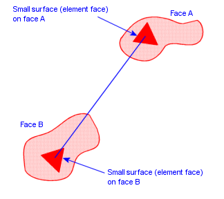 Si bien muchos textos sobre transferencia de calor proporcionan factores de vista para áreas con formas simples, calcular los factores de vista para problemas de la vida real requiere un mayor esfuerzo hasta para las computadoras más veloces. Cuando se le solicita calcular los factores de vista para la radiación entre la cara A y la cara B, el software considera cada cara como una composición de pequeñas áreas (superficies) definidas por las caras elementales. Luego calcula un factor de vista para cada cara elemental relativa con respecto a cada una de las otras caras elementales del conjunto. Los factores de vista entre las caras elementales de la misma cara geométrica están incluidos en estos cálculos.