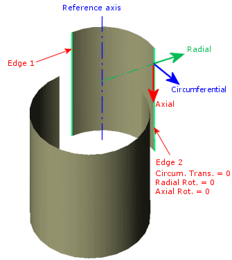 Este modelo de superficie es axisimétrico. Se puede analizar la mitad o un cuarto del modelo. Aplique una restricción Simetría a las aristas de vaciado.