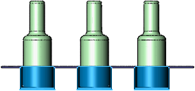Tres sólidos de Región de cuerpo de herramienta para indentar el Sólido de destino (chapa).