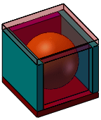 Las ilustraciones a continuación muestran los resultados de aplicar diferentes configuraciones durante la edición de la esfera en este ensamblaje. La esfera está completamente encerrada por bloques, algunos de los cuales tienen la transparencia aplicada como una propiedad de componente.