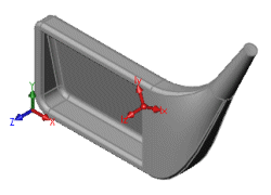En la zona de gráficos, un sistema de referencia de un solo color indica los ejes y el centro principales de masa del modelo. Originalmente se visualiza un sistema de referencia tricolor en 3D.