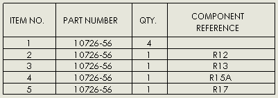 Por ejemplo, puede utilizar Referencia de componente para guardar los designadores de referencia de un ensamblaje de mazo eléctrico o placa de circuitos impresos. Cuando diferentes instancias del mismo componente tienen valores diferentes para Referencia de componente, puede mostrar las instancias como elementos de línea individuales en una LDM. En los dibujos, también puede vincular el valor de una referencia de componente al texto de un globo.