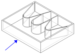 | Croquis abiertos múltiples sobre plano paralelo, misma distancia que la usada para la Base-Extruir (30mm). La flecha indica la dirección de la operación de nervio.