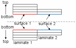 Usted crea dos superficies utilizando el radio interno del eje y selecciona la opción Superficie inferior. Esto elimina la necesidad de definir la geometría cada vez que cambia el número de capas o el grosor de los laminados.
