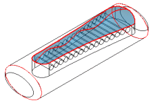 La sección roja es la parte superior del relleno de superficie extruyendo desde el perfil inferior hasta el superior (azul).