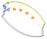 La distancia normal desde el origen de la curva seleccionada hasta la operación a repetir se mantiene para cada instancia.