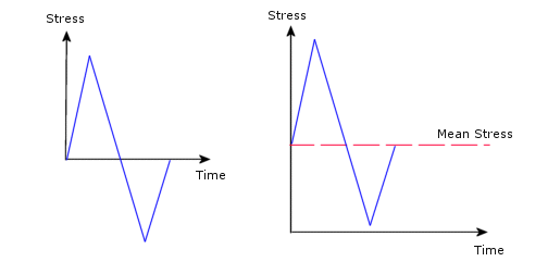 Bir gerilim döngüsünün alternatif gerilim genliği, döngüdeki gerilim aralığının yarısı olarak hesaplanır. Bir gerilim döngüsünün neden olduğu zararın miktarı, alternatif gerilimin yanı sıra ortalama gerilime de bağlıdır. Örneğin, aşağıdaki iki döngü aynı alternatif gerilime sahiptir fakat farklı ortalama gerilimlere sahip olmaları nedeniyle farklı miktarlarda zarara neden olurlar.