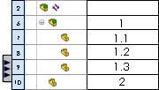 Malzeme listesi bileşenlerinin girintili görünümünde, Malzeme Listesi Montaj Yapısı sütunundaki ilk alt montaja