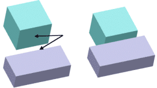 Bloklardan birinin geometrisini, yüzler paralel olacak şekilde değiştirin. Her iki bloğun da ortogonal olmasını amaçladığınızdan, ortogonal olmayan geometrinin nedenini bulmak için blokları inceleyin. Bu örnekte, bloklardan birinin taban ekstrüzyonuna ait çizim dikdörtgen değildi. Sorunlu montaj ilişkisini silmek zorunda değilsiniz. Parçalarınızdaki geometriyi düzelttikten sonra, montaj ilişkisi tatmin olacaktır.