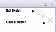 - Çizimi bitirmek için Onaylama Köşesindeki Çizimden Çık simgesine tıklamak veya çizimde yapılan değişiklikleri atmak için Çizimi İptal Et simgesine tıklamak.